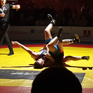 Niko Papadopoulos (130kg griech.-röm. 4:0/8:0) nutzte gleich zu Beginn des Kampfes die Gunst der Stunde und schulterte seinen Gegner Sebastian Stängle in der ersten Kampfminute nach einen lupenreinen Kopfhüftschwung und brachte die Ebersbacher Mannschaft weiter in Führung.