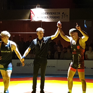 Henrik Roos (75kg G 1:0/17:14) wurde im letzten und entscheidenden Kampf hervorragend von seinen Trainer Hansi Scherr auf seinen Gegner Henrik Lars Schmitt eingestellt. Die SVE-Riege wusste um die Gefährlichkeit des Gästeringers, welcher versucht aus allen Lagen heraus seinen Kopfhüftwurf an den Gegner zu bringen. Beide Akteure zeigten einen Kampf auf Augenhöhe. Der SVE-Athlet nutze seine einzige Möglichkeit, um den Gästeringer nach angezeigter Passivität in der angeordneten Bodenlage durchzudrehen und mit 3:0 Punkten in die Halbzeitpause zu gehen. In der zweiten Kampfhälfte verteidigte dann der Filstäler clevrer seinen Vorsprung und konnte sich am Ende des Kampfes als 3:1 Punktsieger von seinen Fans und der Ebersbacher Mannschaft feiern zu lassen.